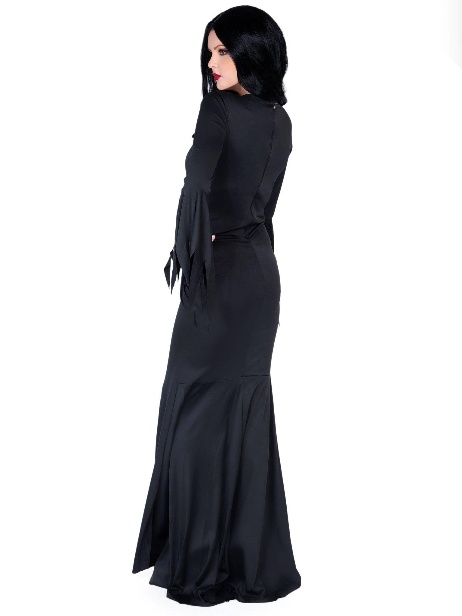 Embrace your inner dark diva with the High Slit Floor Length Bodycon Gothic Dress. This seductive number is a must-have for anyone channeling their favorite horror heroine. The dress features dramatic tentacle bell sleeves, a daring high leg slit, and a plunging v-neck, all crafted from soft, stretchy polyester to hug your curves perfectly.