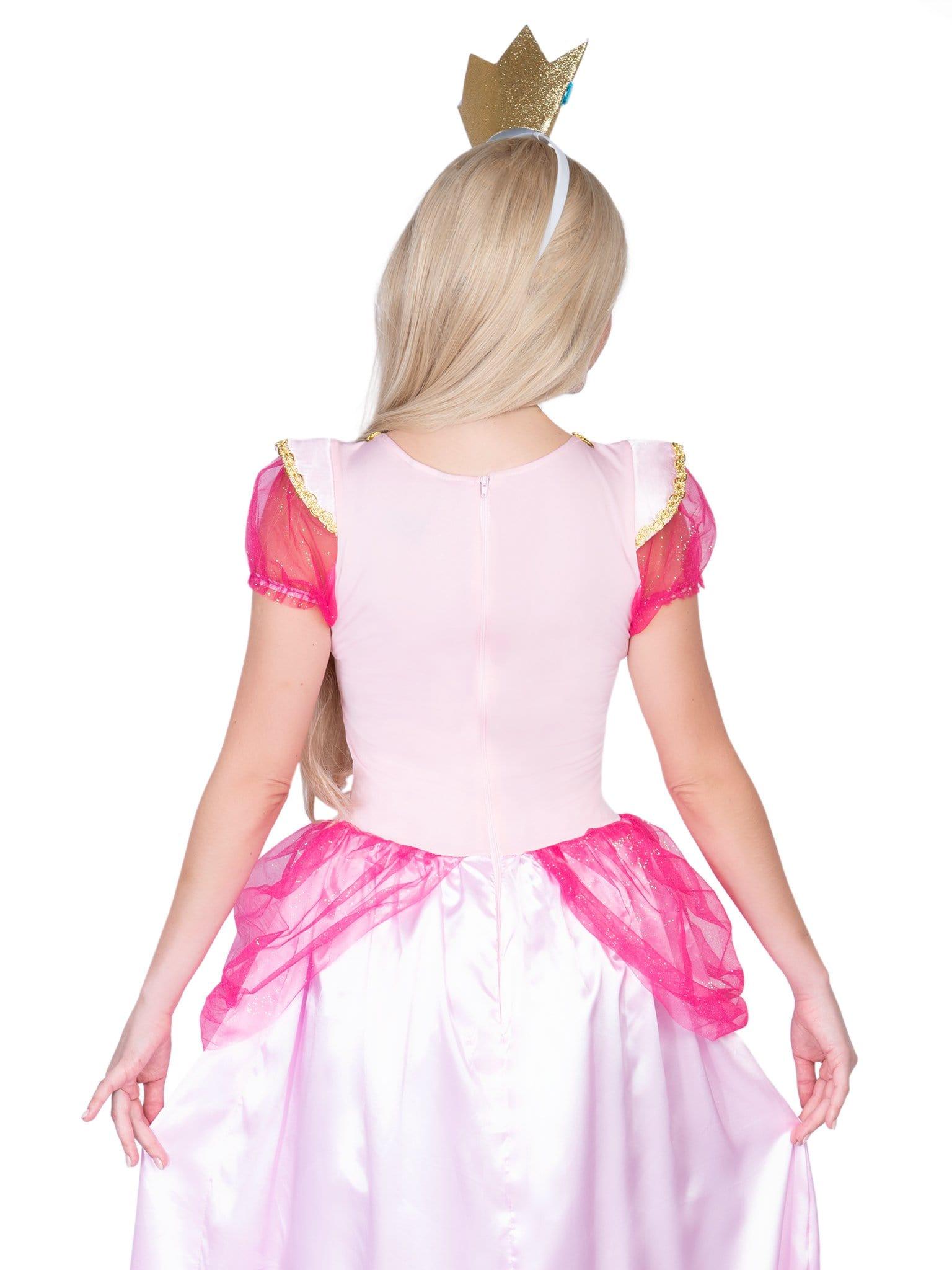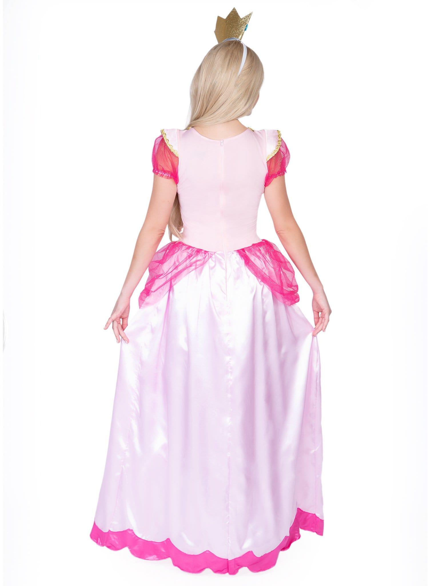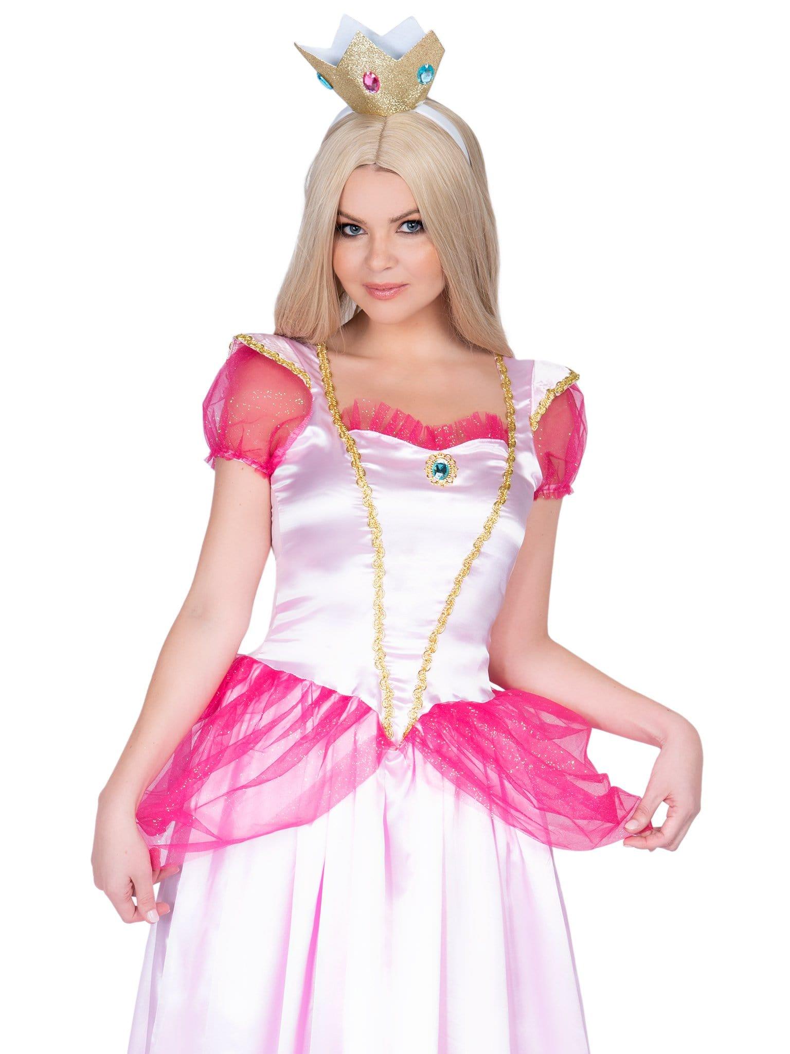 You’ll be ready for a race down rainbow road in the Leg Avenue 2-Piece Classic Pink Princess Dress Costume Set. The peachy keen costume kit includes a long satin gown with iridescent glitter tulle pannier accents and matching crown headband. Sweet and family-friendly, this full-length dress is complete with woven gold trim and gemstone accent. Top this princess peach costume off with the iconic glittering crown headband with gemstone accents.