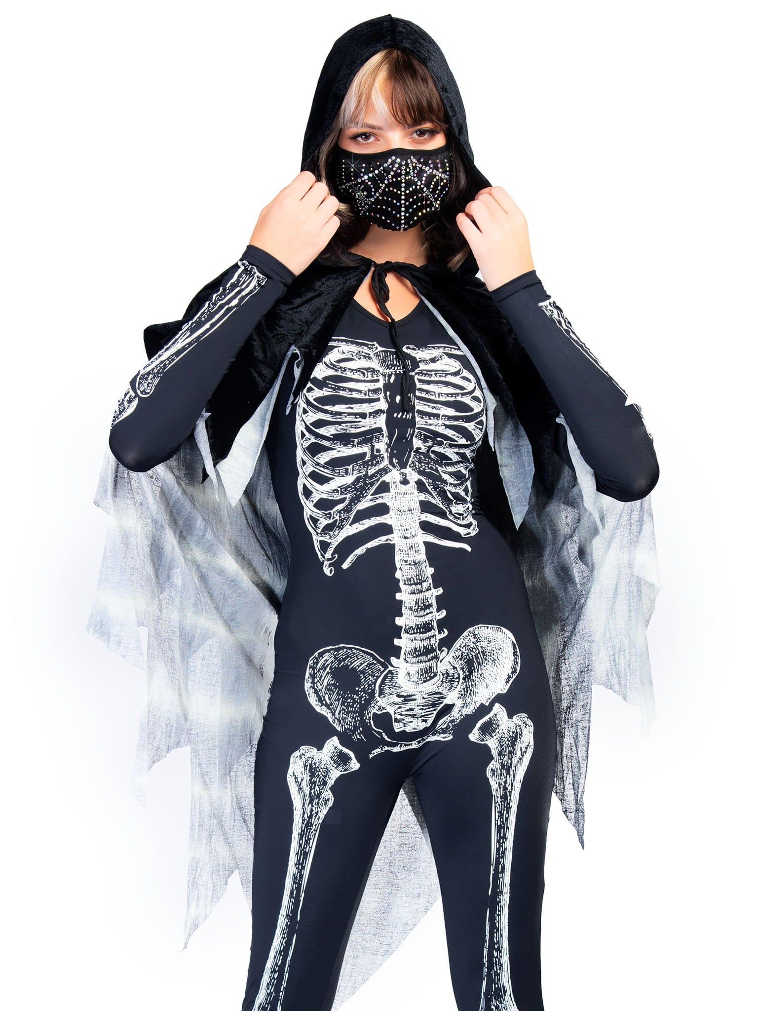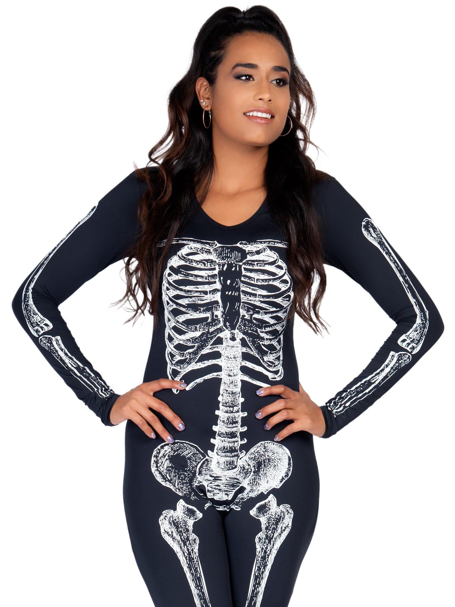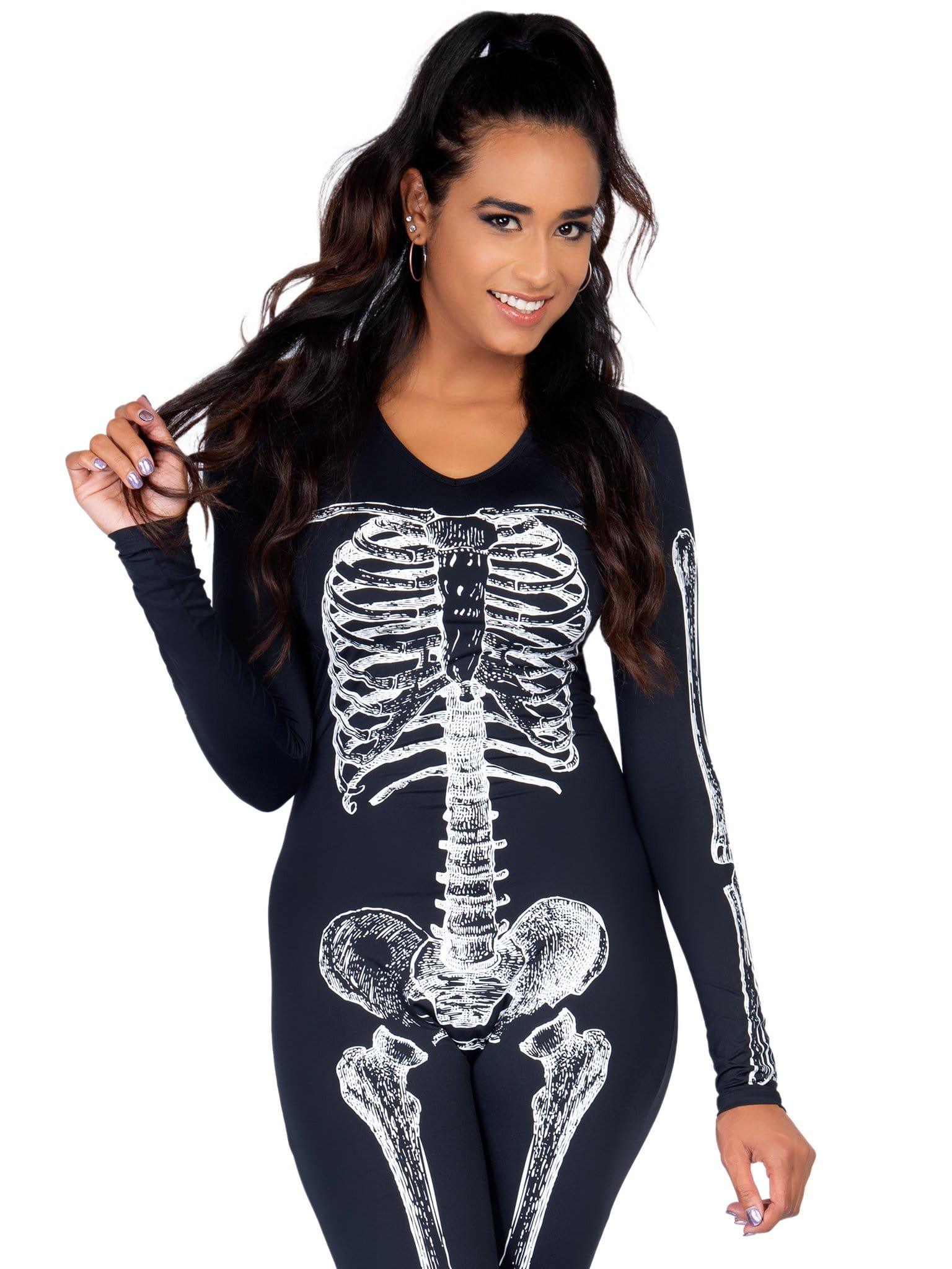 Step into the graveyard in style with the X-Ray Skeleton Catsuit with Zipper Back. This eye-catching bodysuit features a full-body skeleton print, a sleek zipper back, and full-length pants and sleeves. Crafted from stretchy matte spandex, it offers a curve-hugging fit that’s as comfortable as it is flattering for almost any body type.
