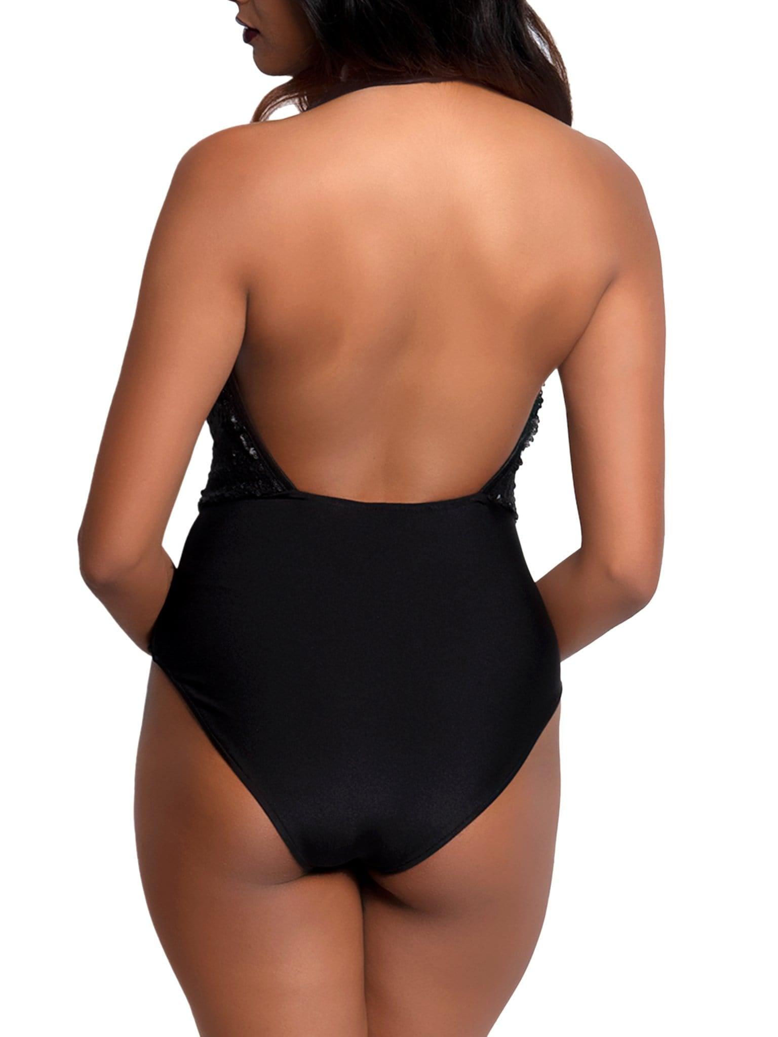 Elevate your DIY costumes or festival ensemble with the ultra-sexy Sequin Snap Crotch Plunging Halter Bodysuit. This bold bodysuit features a dramatic plunging neckline, a provocative open-back halter design, and a convenient snap crotch for effortless wear. The dazzling sequin top adds a touch of sparkle, while the plunging V-neck cut ensures a fierce look.