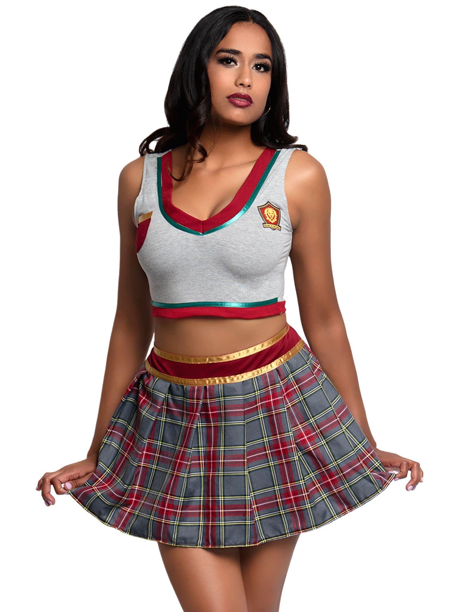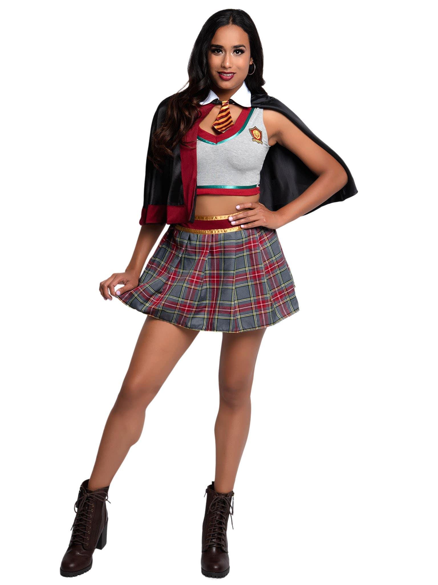 30 points to the hottest house around in the enchanting Leg Avenue 3-Piece Spellbinding School Girl Costume. Each charming costume set includes a fitted crop top with badge accents, matching plaid skirt and cape with attached tie. For a magically flattering fit on almost any figure, this sexy school girl uniform is complete with a fluttering high waist skirt and stretchy deep-v crop top.