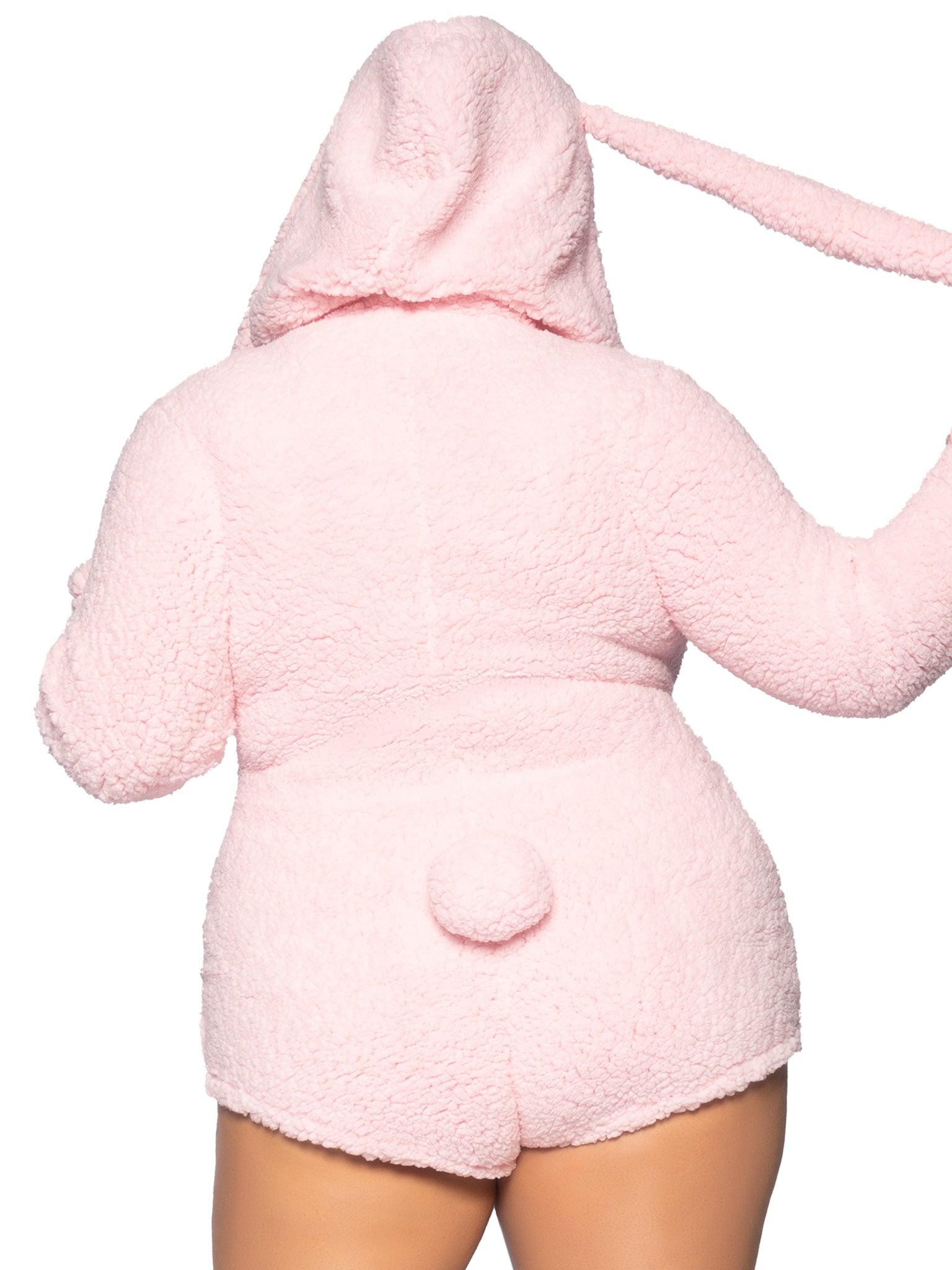 This Plus Cuddle Bunny women's costume by Leg Avenue is perfect for loungewear vibes. The onesie romper features ultra-soft fabric, a floppy bunny ear hood, and a bunny tail. Zipper front and cheeky leg cut make it ideal as a Halloween costume, parties, or everyday loungewear. Included in the package is the romper. For a complete look, add Leg Avenue socks.
