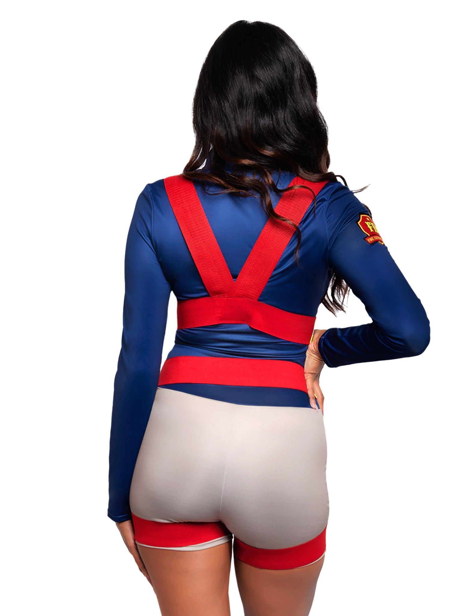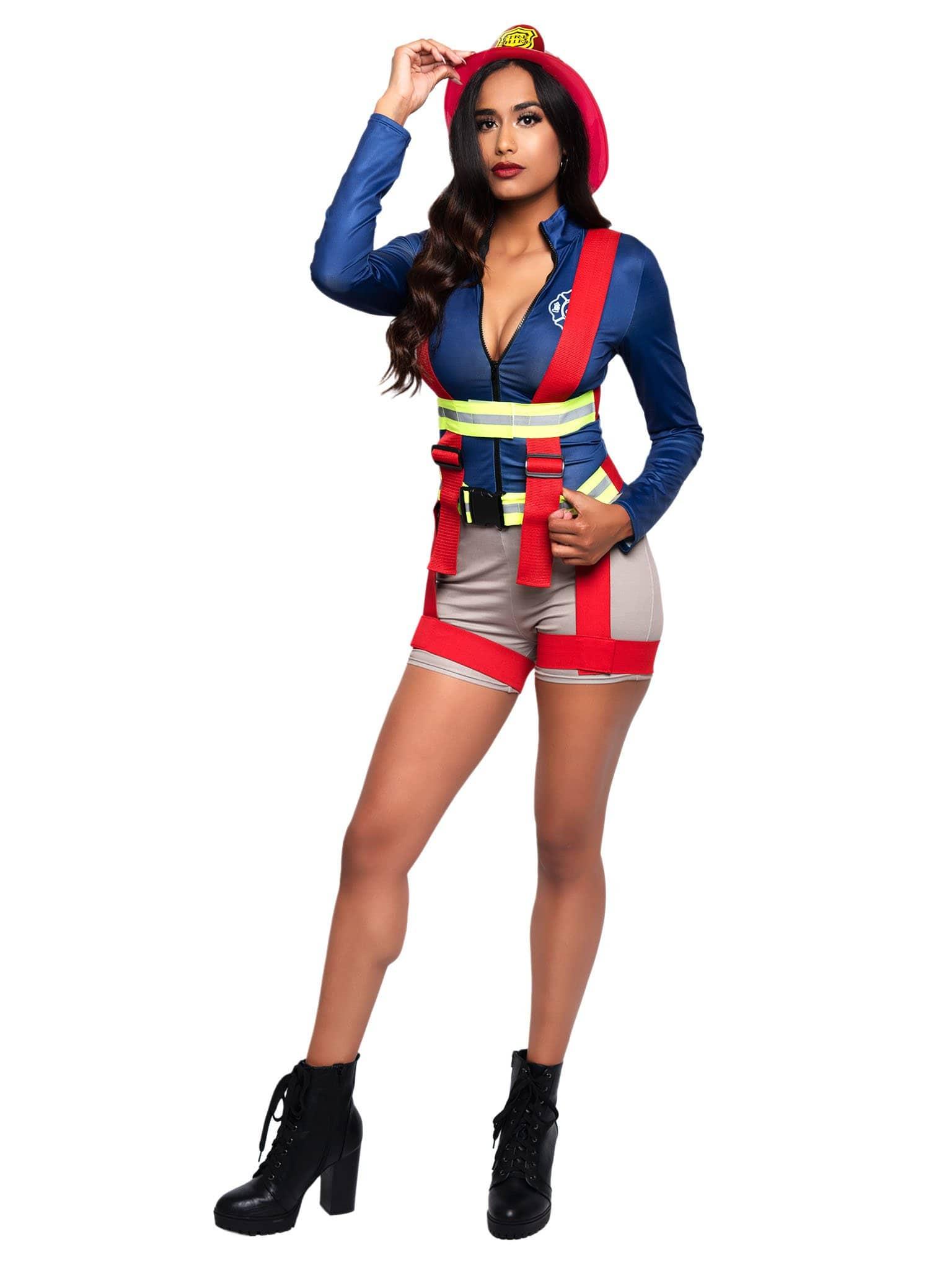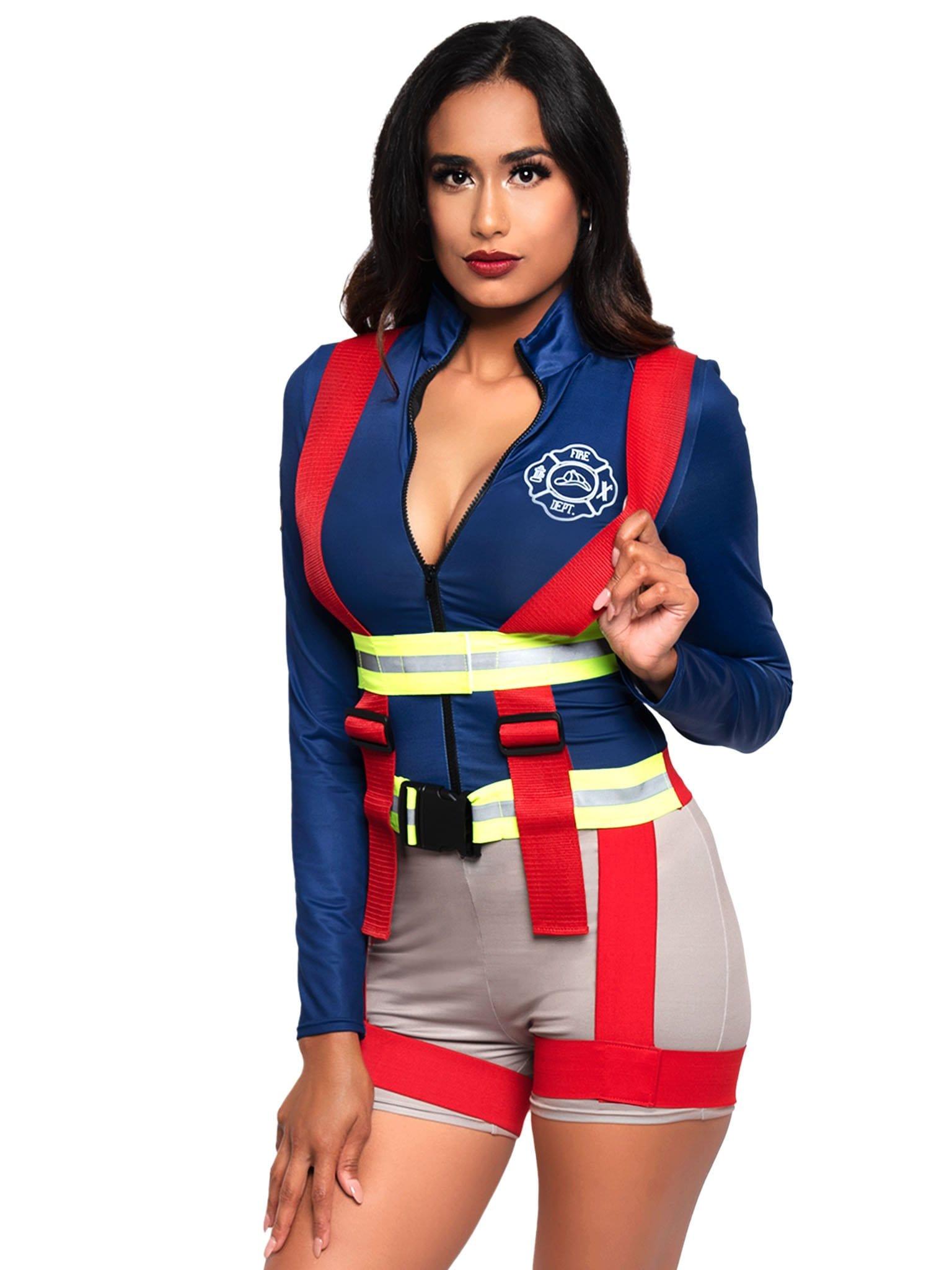 Serve up smoking hot looks in the Leg Avenue 2-Piece Hot Zone Honey Firefighter Costume Set. This extra-spicy costume set includes a zip up romper with patch accents and reflective garter suspenders. Turn the heat up wherever you go with the costume’s stretchy body-forming fabric and curve hugging harness.