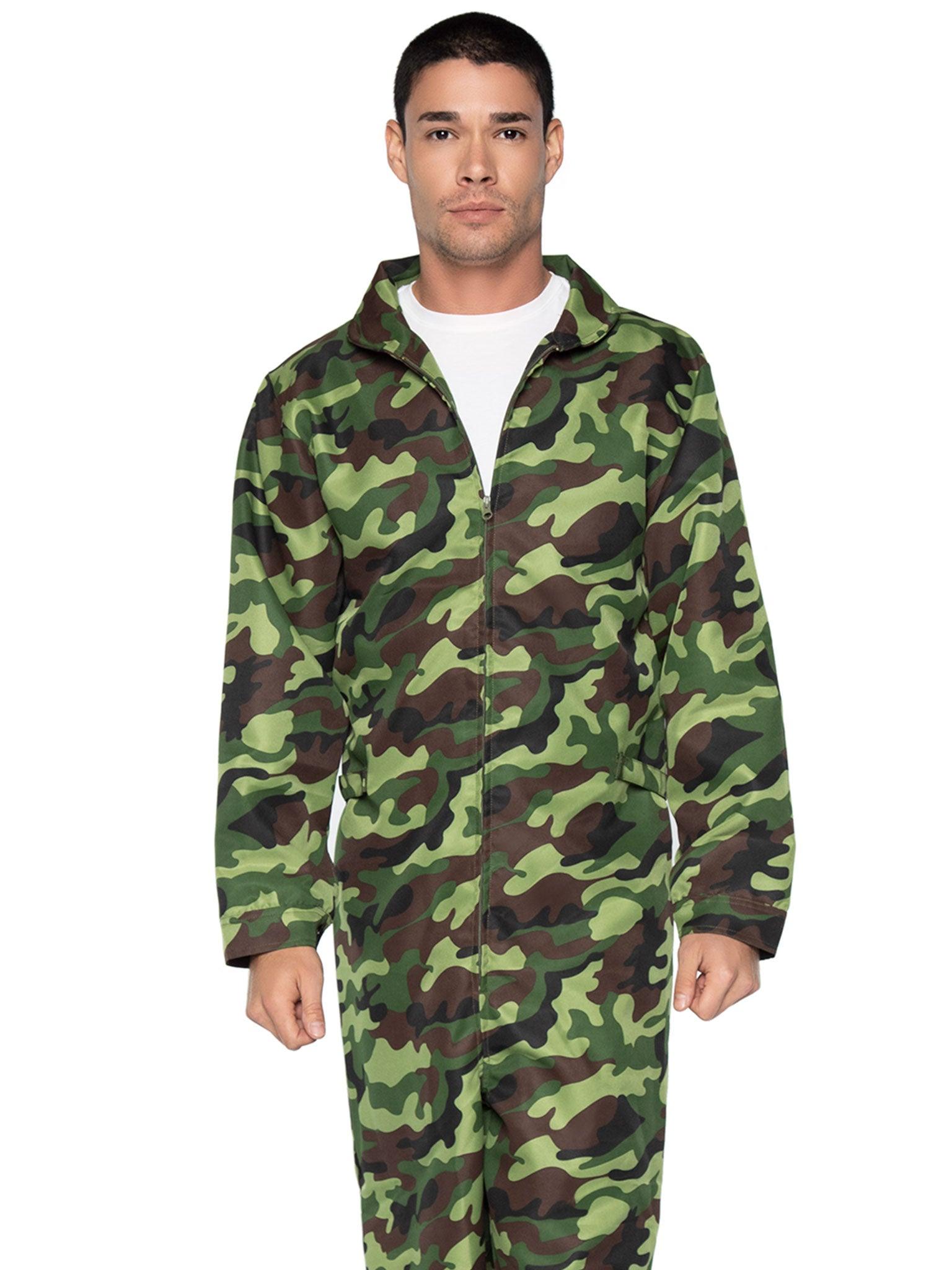 This Leg Avenue Men's Zippered Jumpsuit Costume is designed to mimic a military man's look and feel. It has a collared jumpsuit with a double-sided zip-up front for easy wear, providing a comfortable fit for events like trick-or-treating, bar crawls, costume parties, and cosplay. The camo jumpsuit is a versatile option for DIY costume ideas.