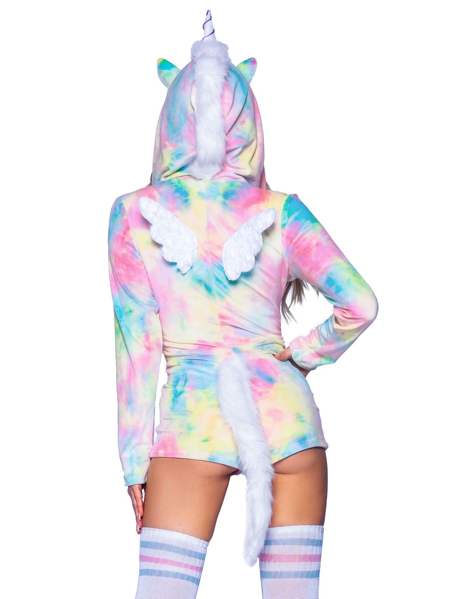 Look no further than the Leg Avenue Pastel Unicorn Romper for a mythical costume that is both comfy and cute. This Halloween look features a plush velvet zipper front romper with a spiral horn hood, faux fur details, and mini wings. The tie-dye velvet, bright white fur, and glittering horn bring a vibrant energy, while the zipper front lets you customize your desired depth of neckline. Plus, the horn hood, fringed trim, and stretchy velvet make this costume ultra-cosy and fun for women of almost any body type.