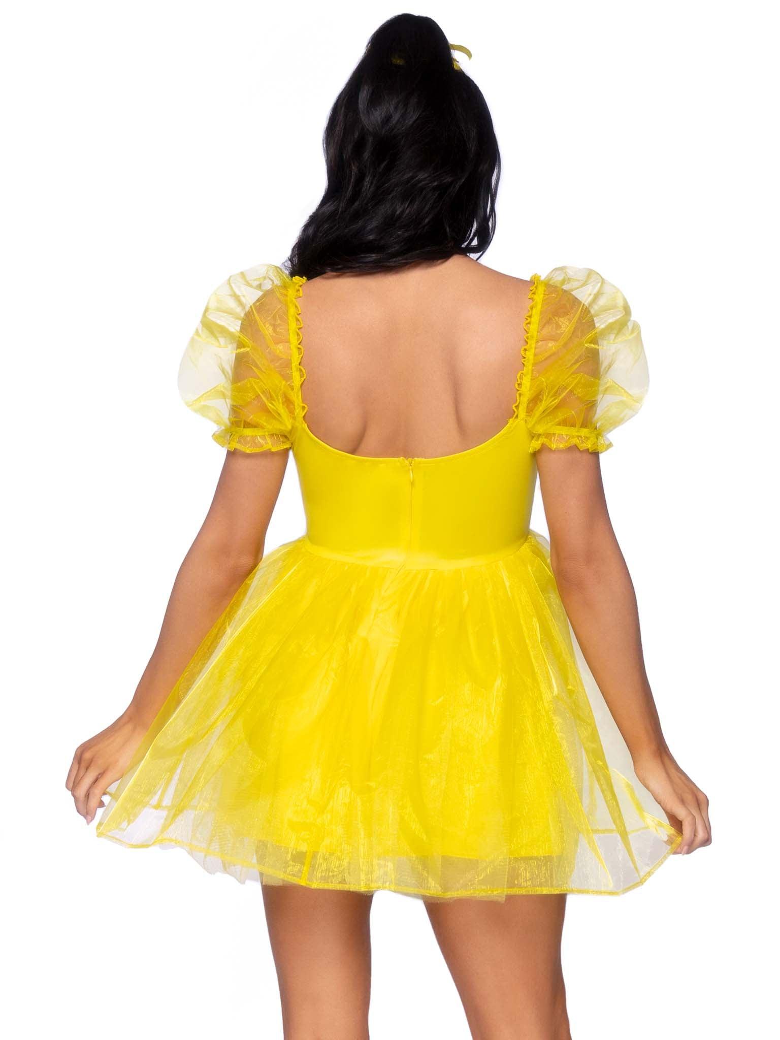 Step into a fairytale with the Frosted Organza Babydoll Dress. This enchanting piece features a fitted sweetheart bodice, airy organza puff sleeves, and delicate ruffle trim, all complemented by a layered organza skirt. The circle skirt accentuates your curves, creating the perfect princess look. For a personalized touch, pair it with Nylon Thigh Highs and a Laser Cut Mini Crown. Explore the collection for more DIY costume ideas ideal for Halloween, themed parties, cosplay, or roleplay.