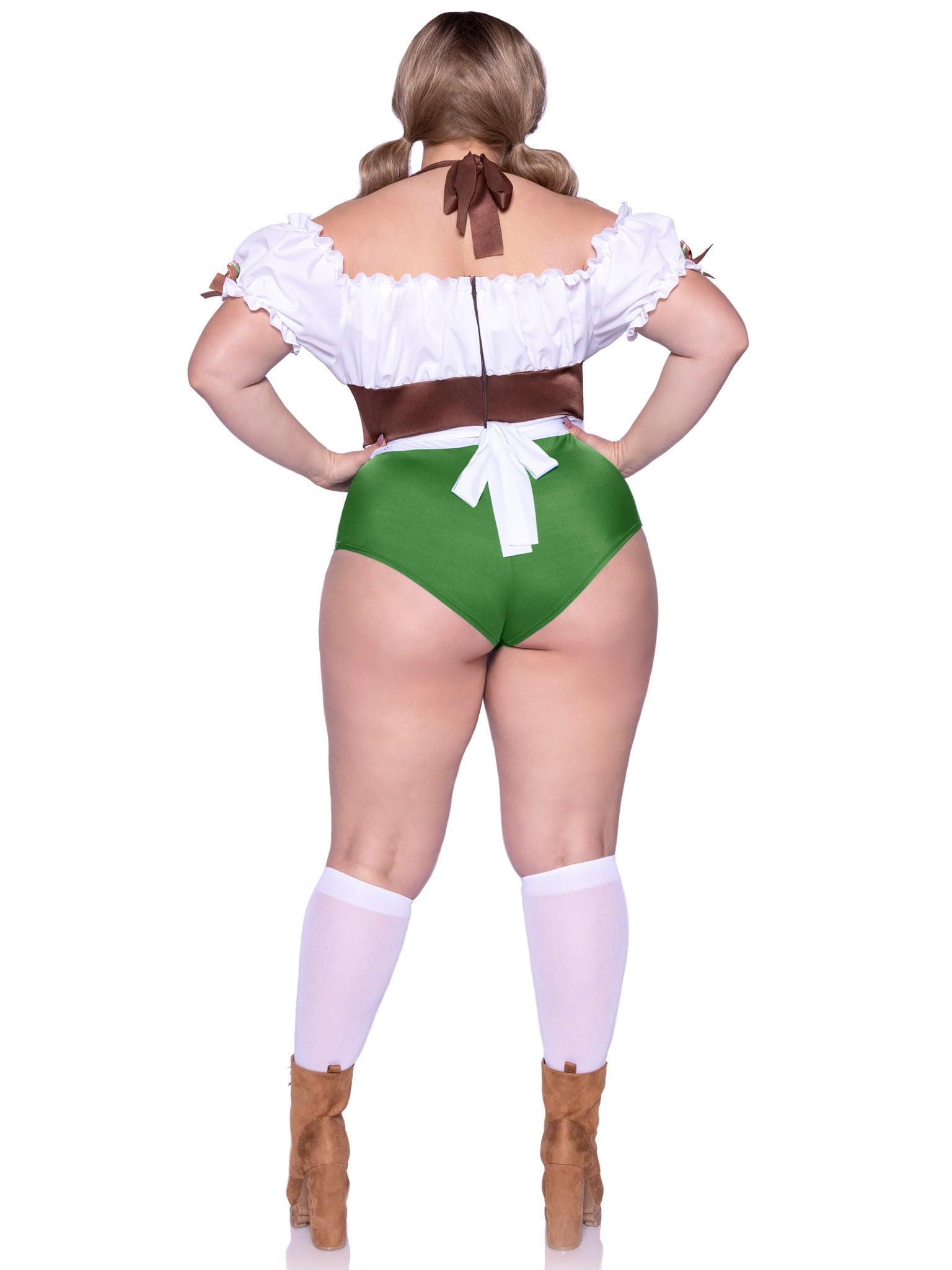The Leg Avenue 2-Piece Frisky Fraulein Costume will turn heads with its curve-hugging fit and Bavarian-style bodysuit accented with satin ribbon trim. The eye-catching ensemble includes an off-the-shoulder peasant top, snap bodysuit, attached apron, and soft stretchy stockings with ribbon bow accents. All the perfect details for a beer-hoisting night of fun!