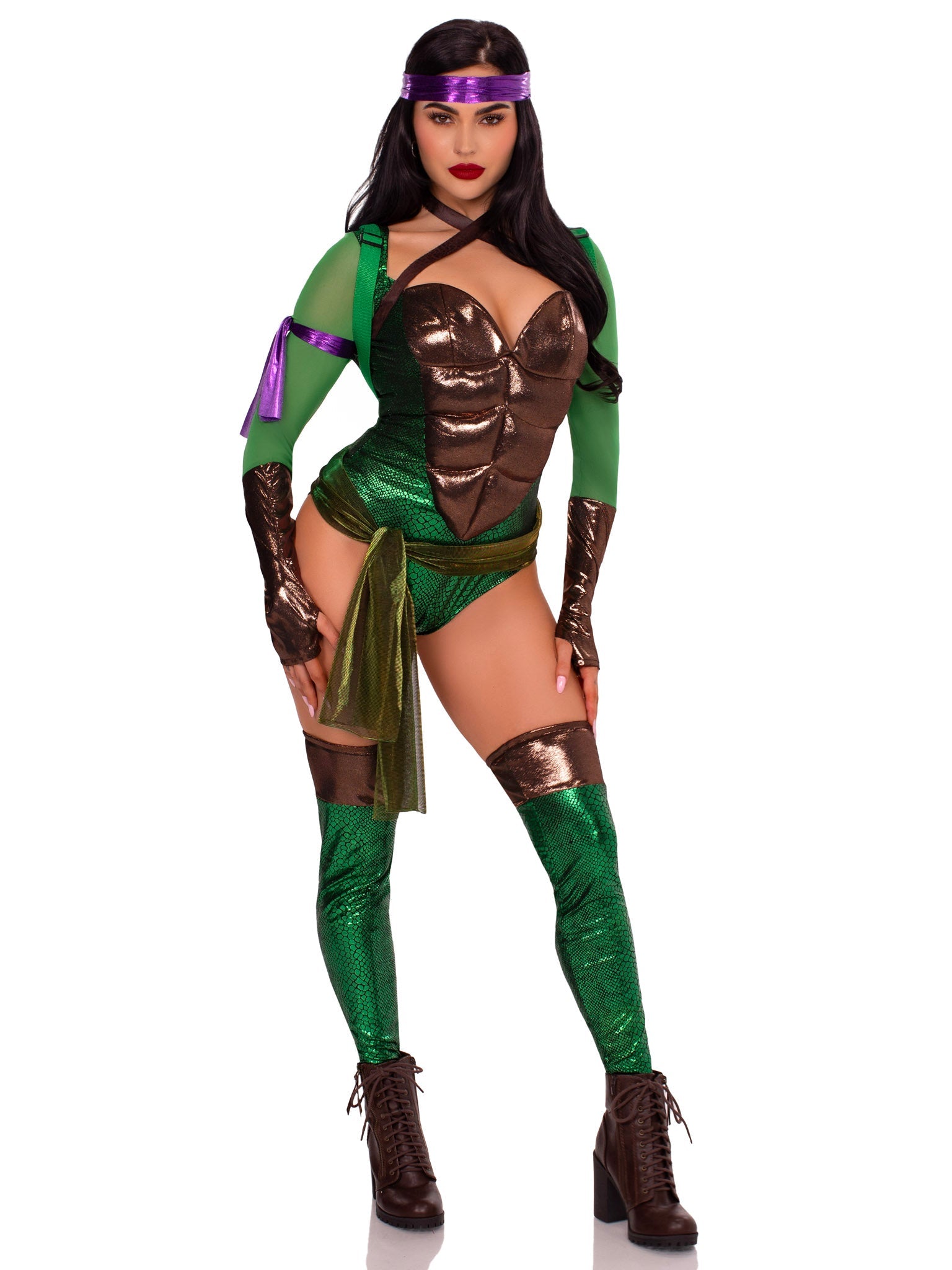 • Fit & Style: The sculpted bodysuit and playful accessories create a curve-loving silhouette with major throwback energy and undeniable turtle attitude