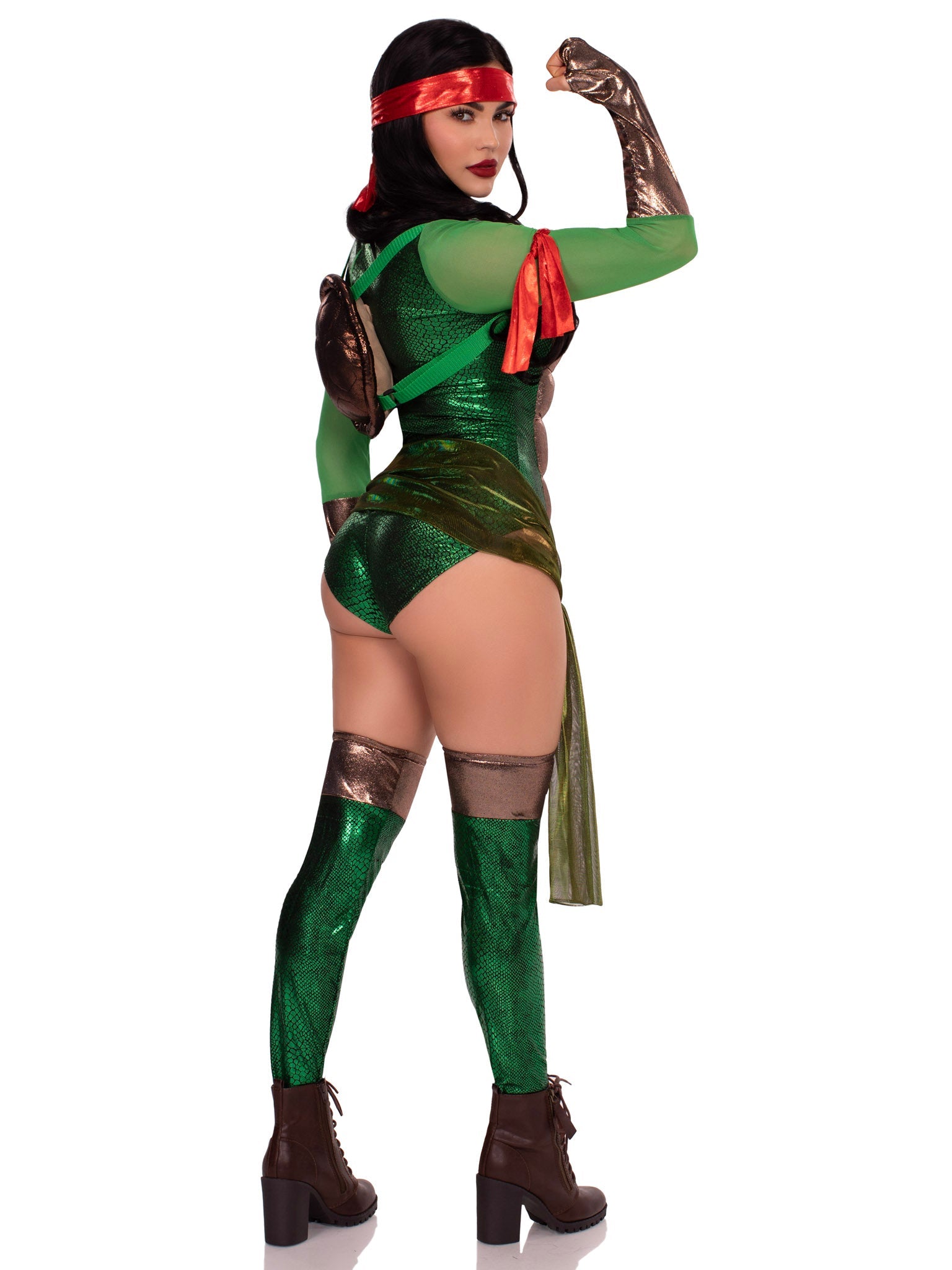 • Fit & Style: The sculpted bodysuit and playful accessories create a curve-loving silhouette with major throwback energy and undeniable turtle attitude