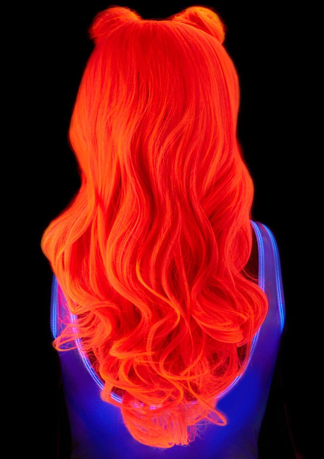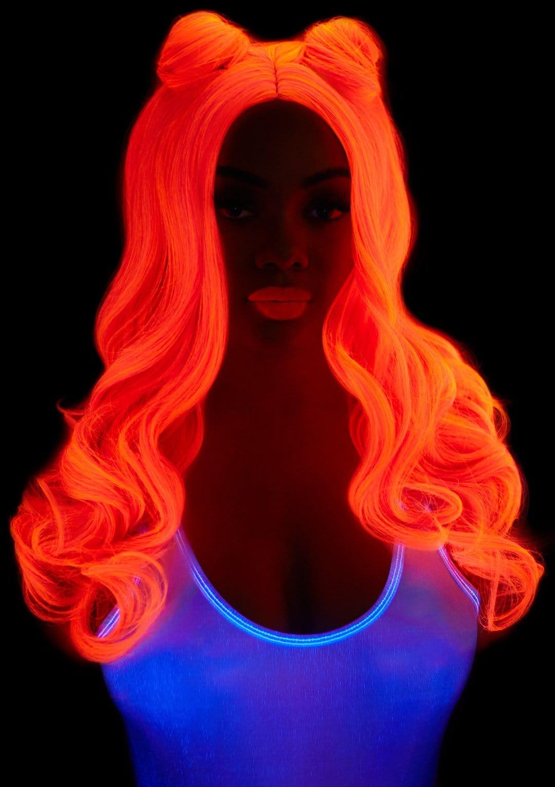 Channel cosmic charm and celestial allure with the 24” Long Beachy Waves Wig with Buns. This fantastical wig features cascading, tousled curls complemented by playful tiny buns and vibrant fluorescent strands. Designed with an adjustable cap for a comfortable fit, it’s perfect for enhancing your Halloween costume, cosplay, or festival look.