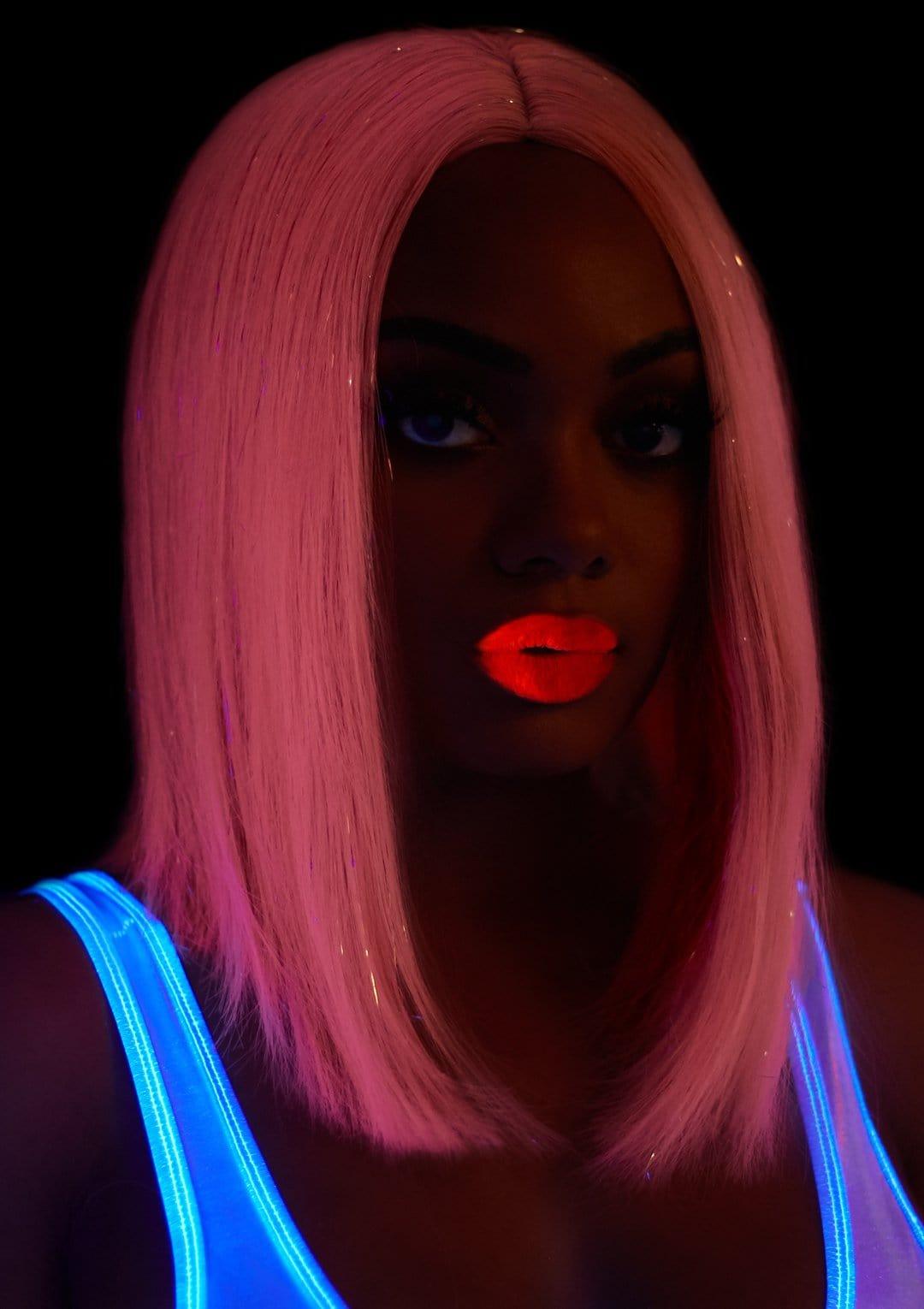 Elevate your style to otherworldly heights with the 15” Long Bob Wig with Tinsel. This enchanting wig features a shoulder-length angled cut, vibrant color, and shimmering tinsel that sparkles with every move. Designed with an adjustable cap for a comfortable fit, it’s perfect for Halloween, cosplay, or adding a touch of magic to music festivals.