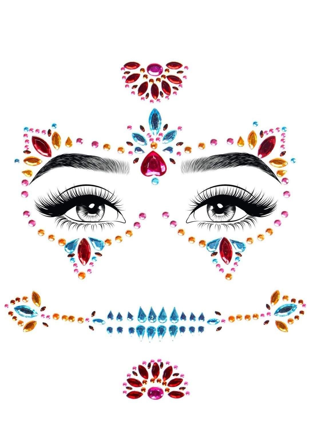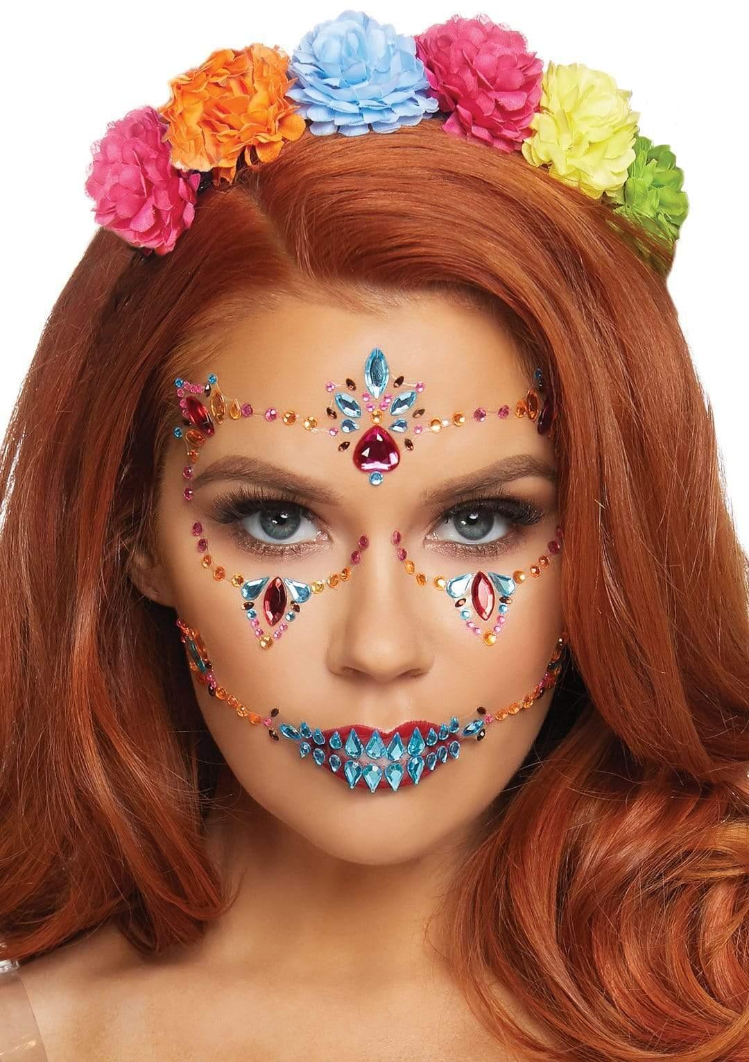 Bring Vibrant Día de Muertos Flair to Your Look with the Day of the Dead Adhesive Face Jewels Set!