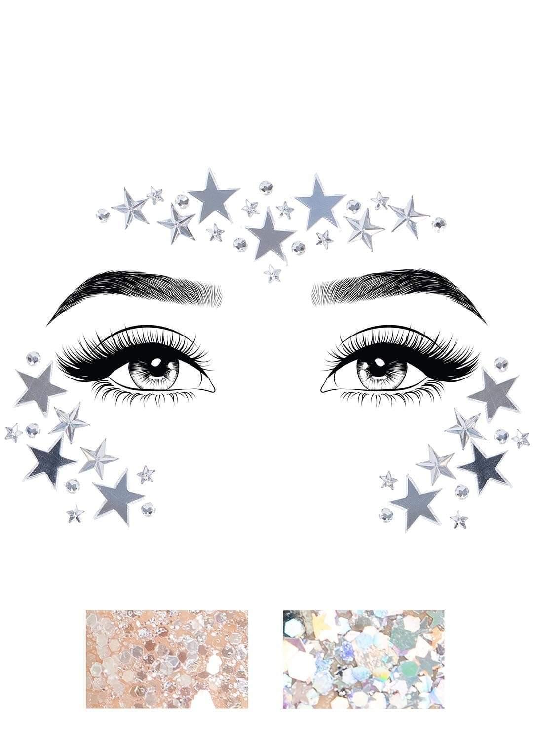 Shine like a celestial star with the Dream Adhesive Mirror Star Rhinestone Face Jewels and Glitter set. This enchanting collection features sparkling mirror star and rhinestone face jewels paired with two packets of coordinating glitter for a truly mesmerizing look.