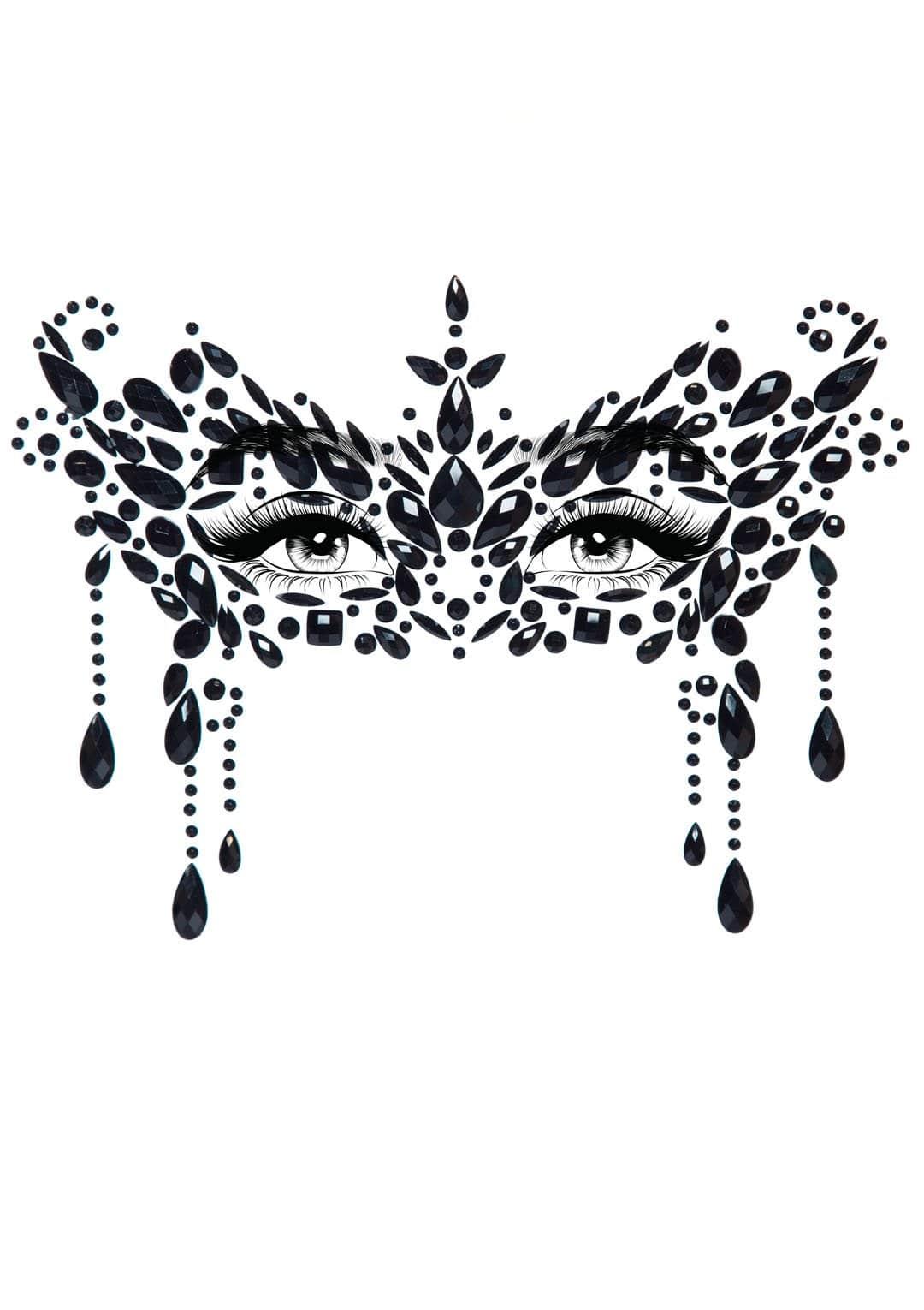 Add an air of mystery and glamour to any costume or festival look with the Masquerade Adhesive Face Jewels. This sparkling gemstone mask features polished black jewels and an intricate winged mask design, adding a touch of elegance and intrigue.